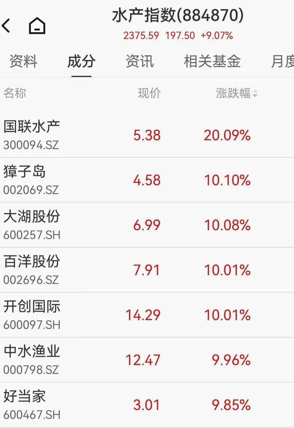 水产股大爆发,中水渔业4连板,国联水产等多股涨停
